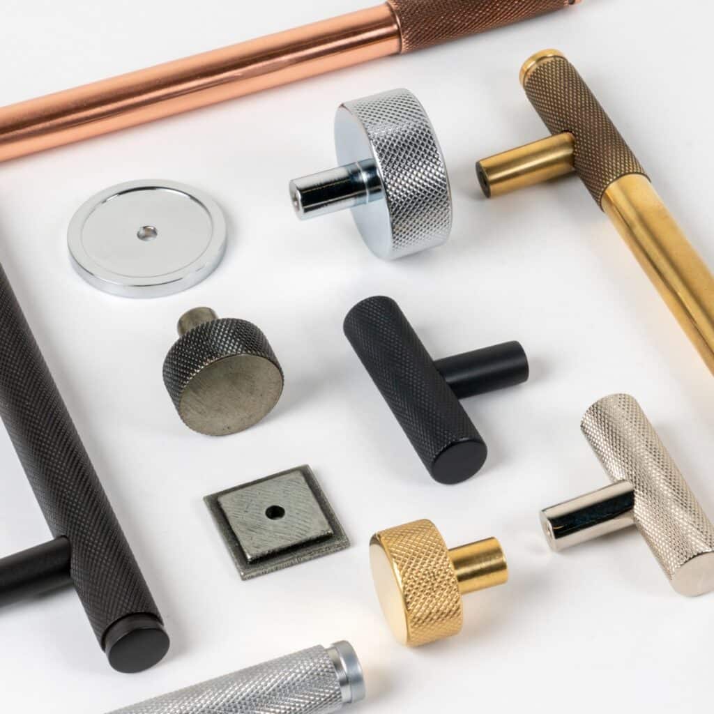 The Brompton lever handles are one of From The Anvil’s first contemporary designs. Their notable design quickly picked up traction earning a position as one of the best sellers with the brand. The distinctive knurling pattern reflects authentic Art Deco design and adds detail and interest to any space. Diamond detailing is present throughout the entire circumference of Brompton Cabinet Knobs, and Brompton T-Bars highlighted against the smooth flat ends offering the perfect contrast. From The Anvil offer a Half-Brompton Pull Handle, which breaks up the elements to create an aesthetically pleasing product.