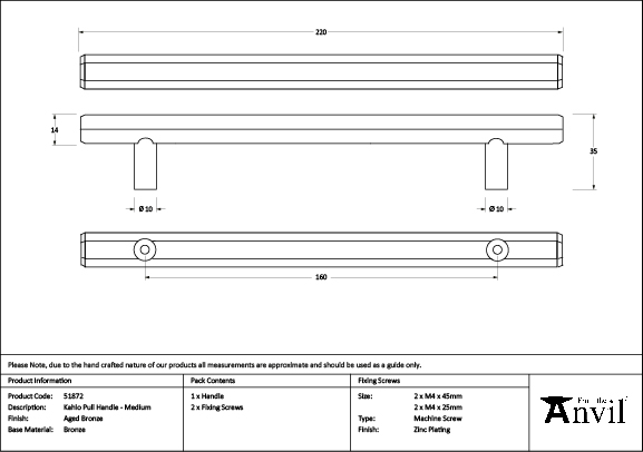 Our Aged Bronze products are manufactured from solid bronze containing a minimum of 85% copper. Due to the process used to age the metal, this finish is very dark and has a rich, matt appearance. During the final stages of manufacturing, we apply a durable, matt lacquer to this finish which helps preserve its distinctive tones.