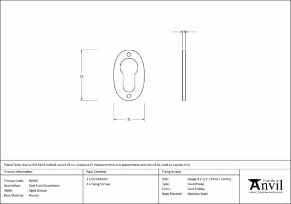 This finish is manufactured from solid bronze containing a minimum of 85% copper. The finish has a rich, matt look and is very dark due to the process used to age the metal.