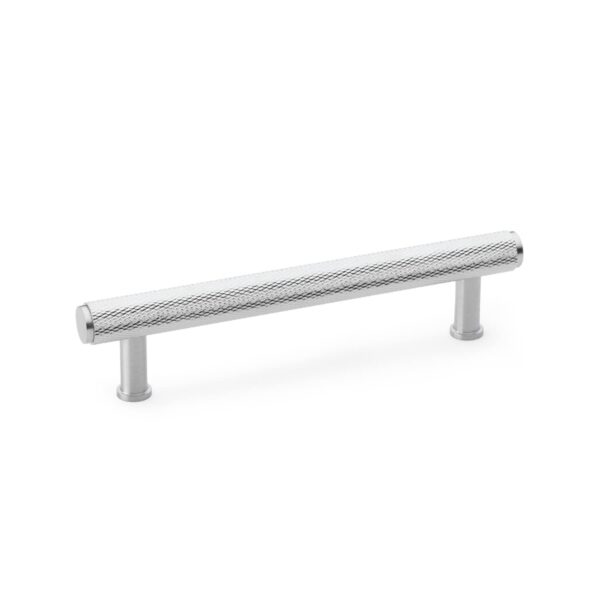 Alexander & Wilks – Crispin Dual Finish Knurled T-bar Cupboard Pull Handle – Polished and Satin Chrome – Centres 128mm