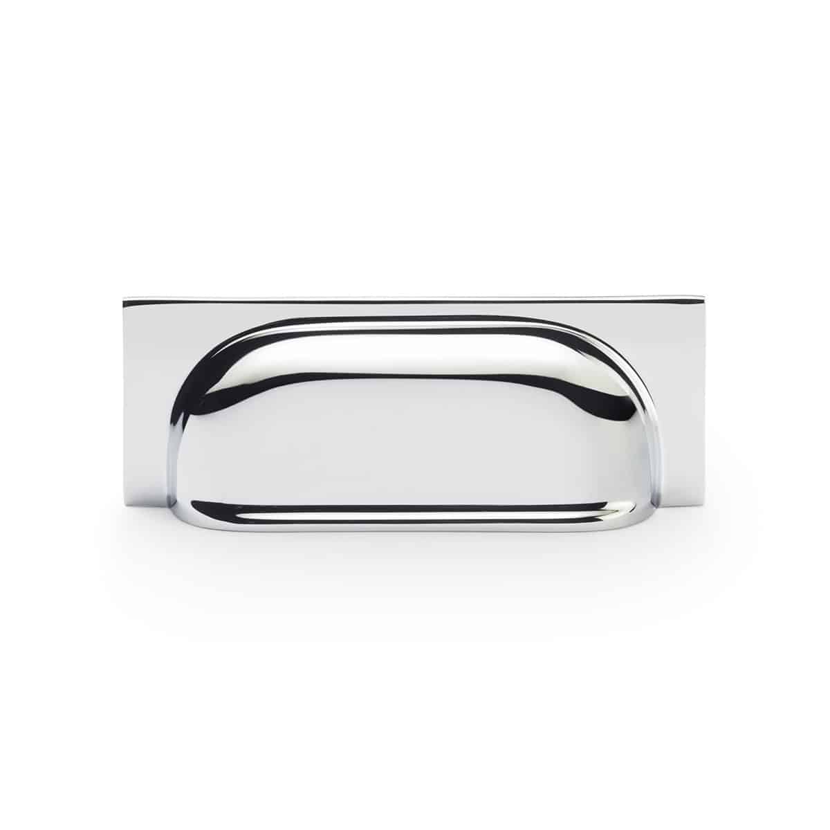 The Alexander and Wilks Quantock Cup Pull Handle has a traditional simple and stylish design crafted onto a rectangular backplate. The cup shape handles effortlessly arises from the backplate to create a clean finish to enable ease of opening on drawers and cupboards.