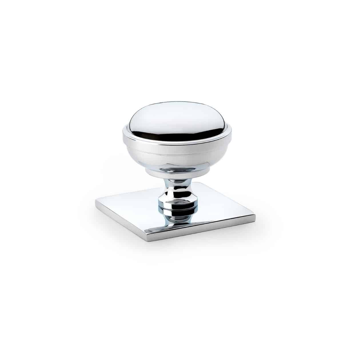 Alexander & Wilks – Quantock Cupboard Knob on Square Backplate – Polished Chrome – 34mm
