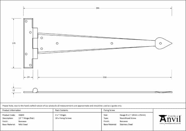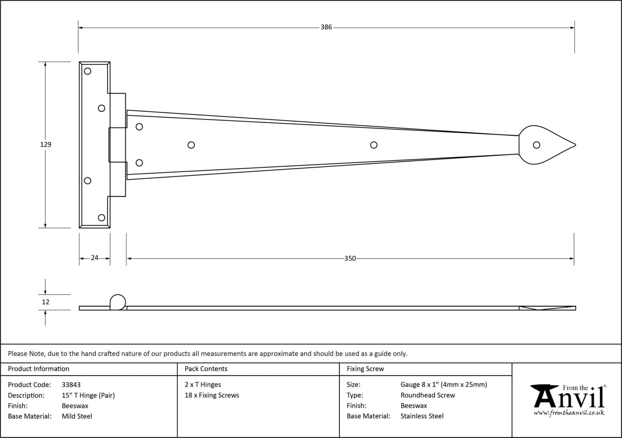 Beeswax 15″ Arrow Head T Hinge (pair)