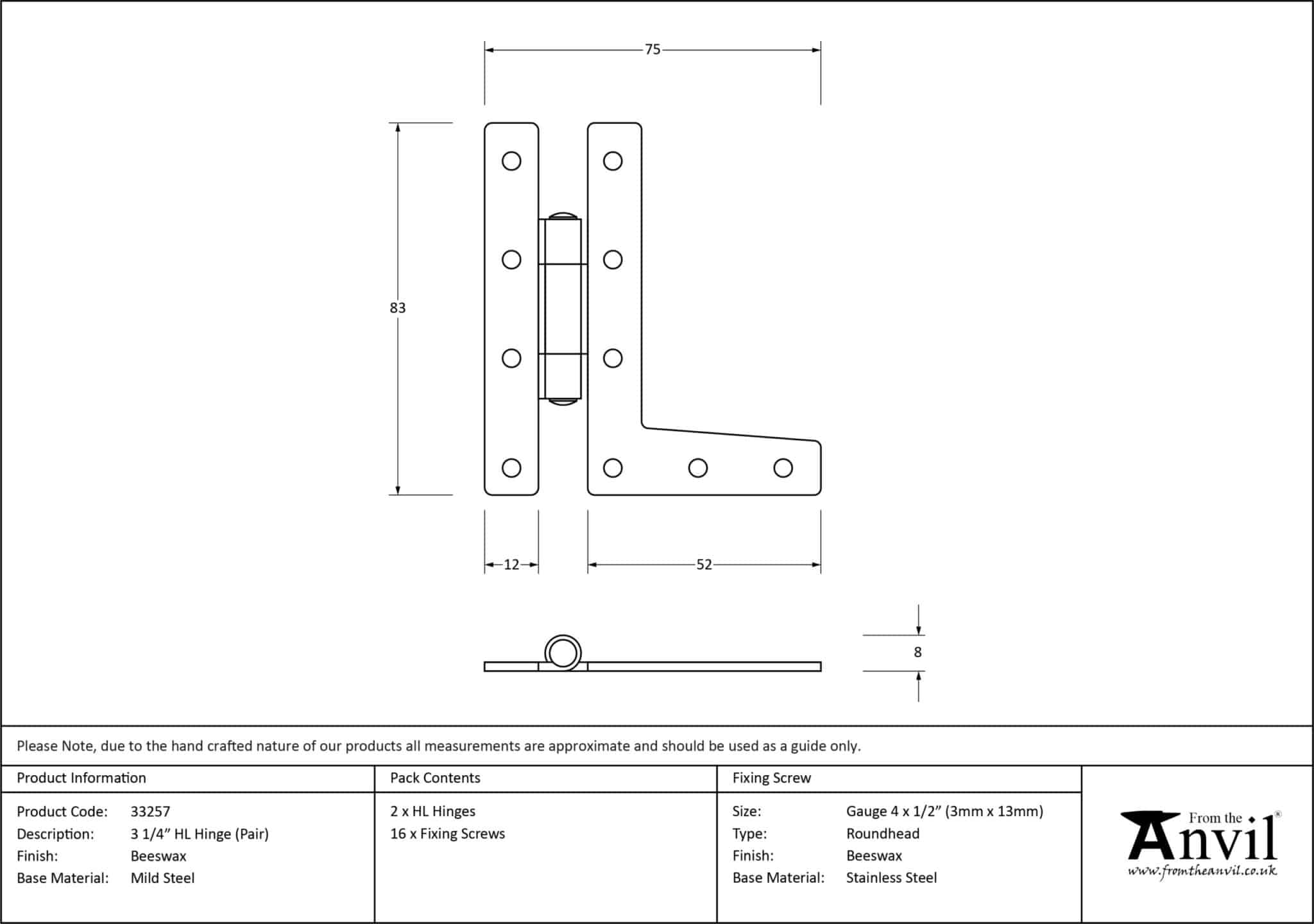 Similar to a H hinge but with one L shaped fixing plate to provide extra support for large or damaged cupboards, doors, windows or shutters.