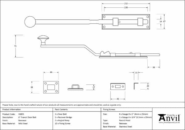 We have an extensive range of door, window, french and flush bolts, ranging from 4″ to 12″.