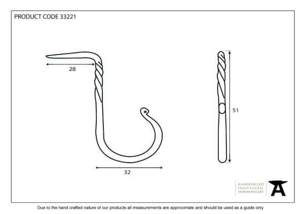 Our cup hooks feature an ornamental twist and gentle curve. They can be used for anything from hanging cups on a dresser, holding a wooden rail, such as a towel rail, or simply hanging your own dressing gown.