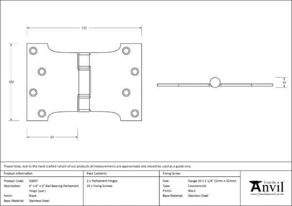 Black 4″ x 4″ x 6″ Parliament Hinge (pair) ss