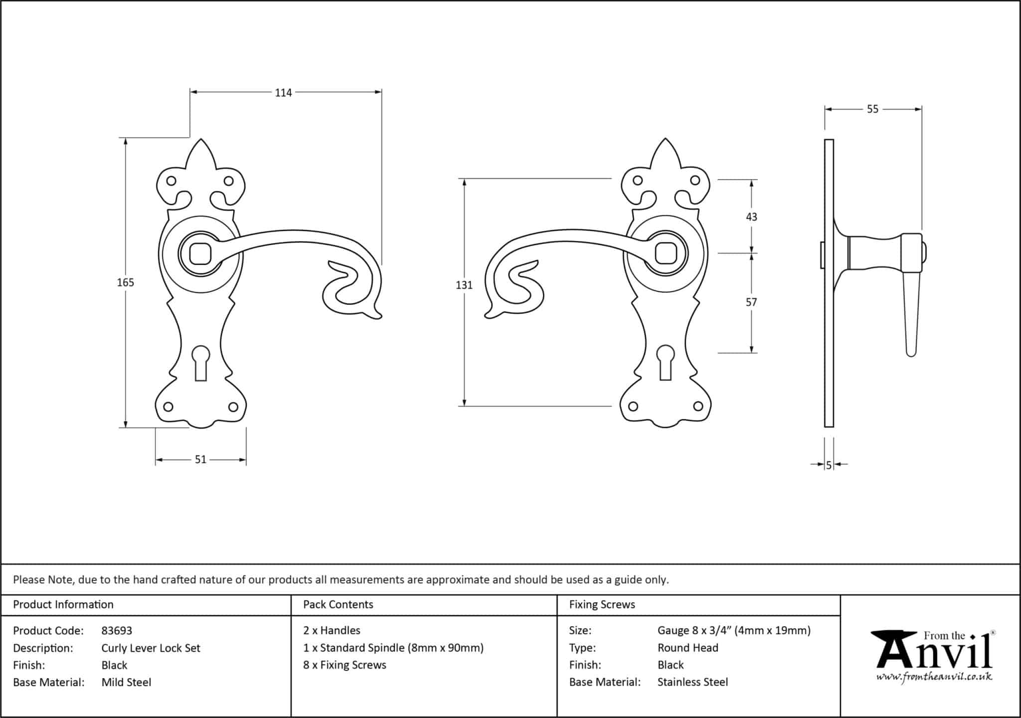 Black Curly Lever Lock Set