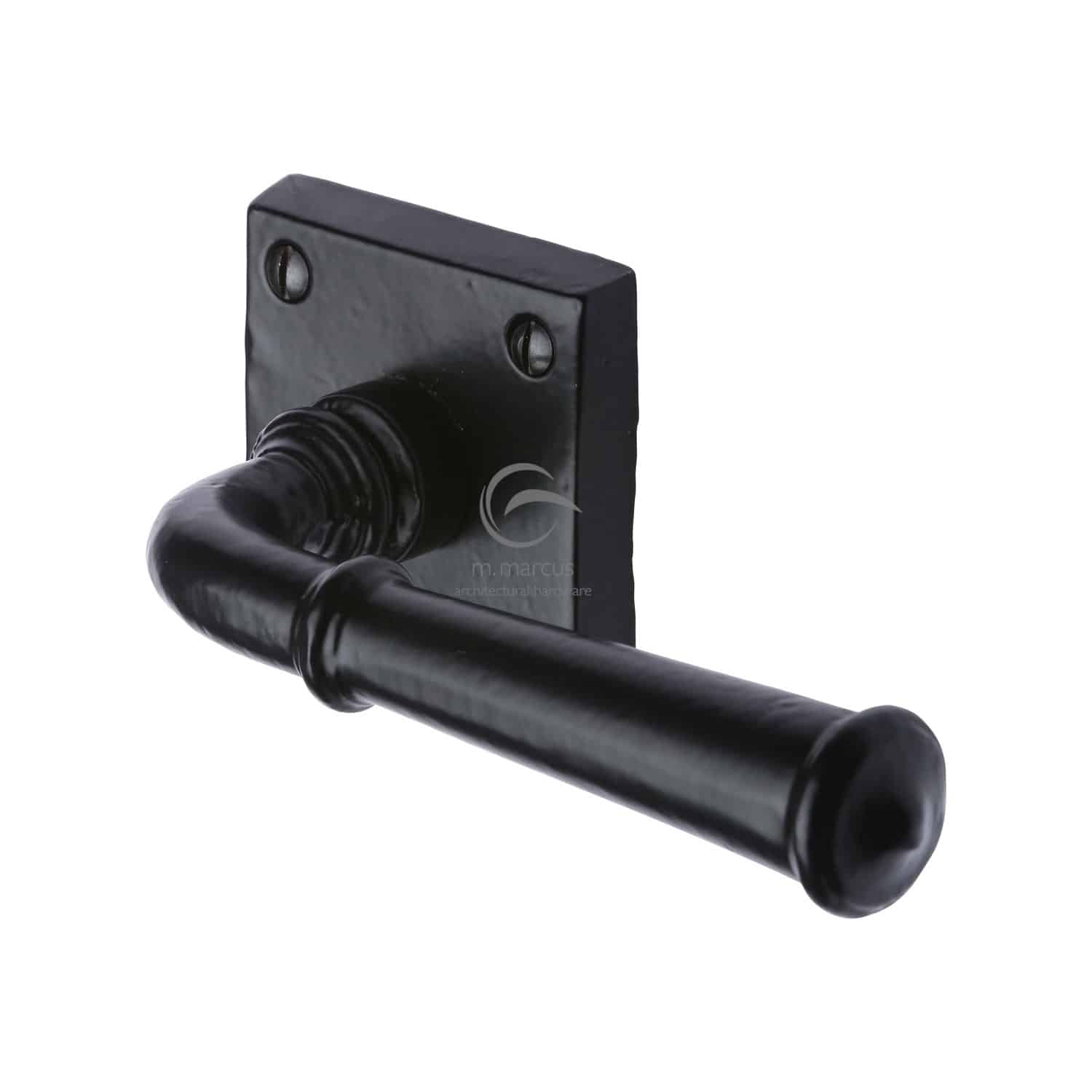 Black Iron Rustic Door Handle Lever Latch on Square Rose Claverley Design