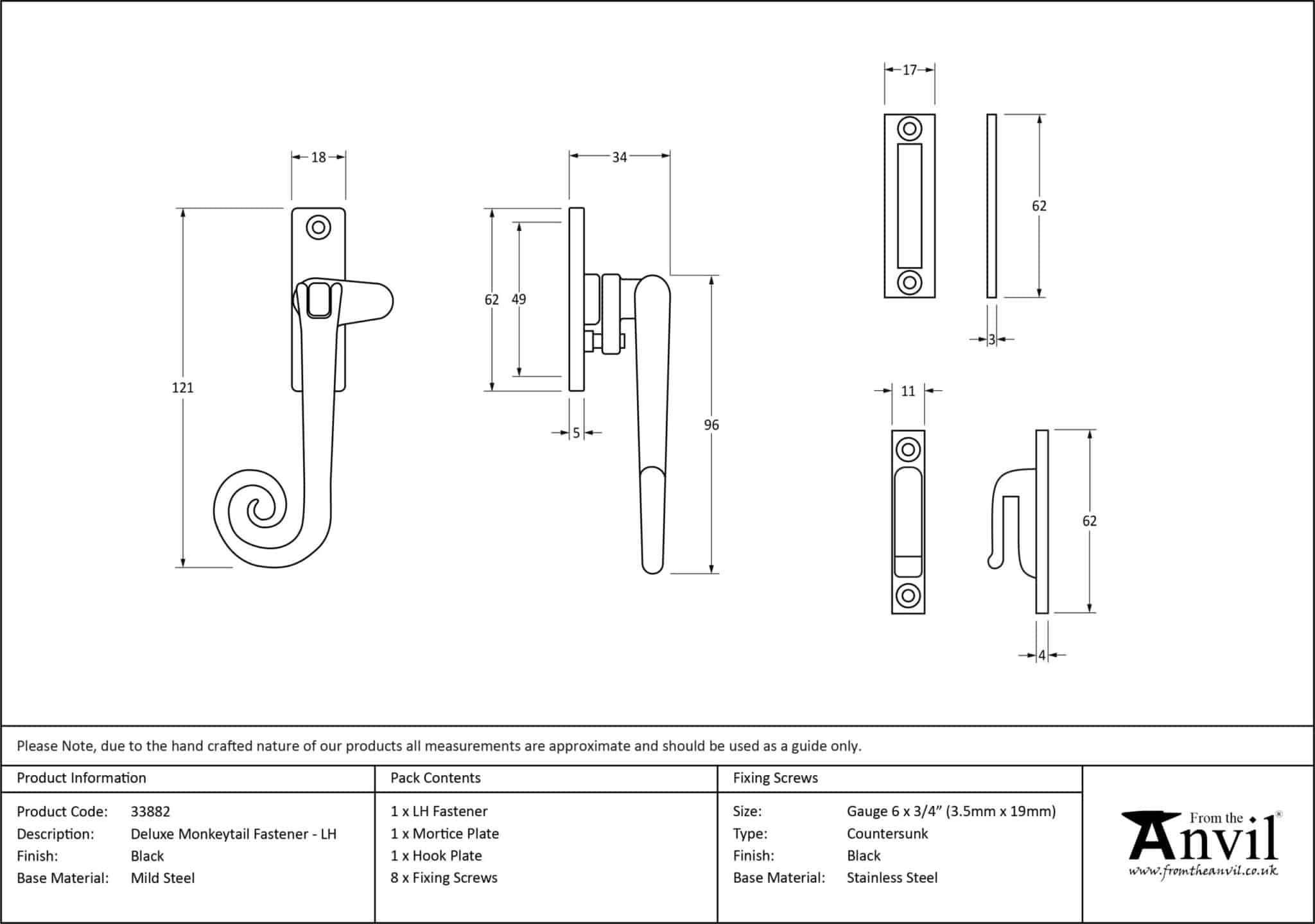 Our black finish is a popular choice in traditional settings, it has a subtle sheen and offers a bold contrast on both stained and painted timber alike. It is baked in a high-temperature oven giving it durable corrosion resistant properties.