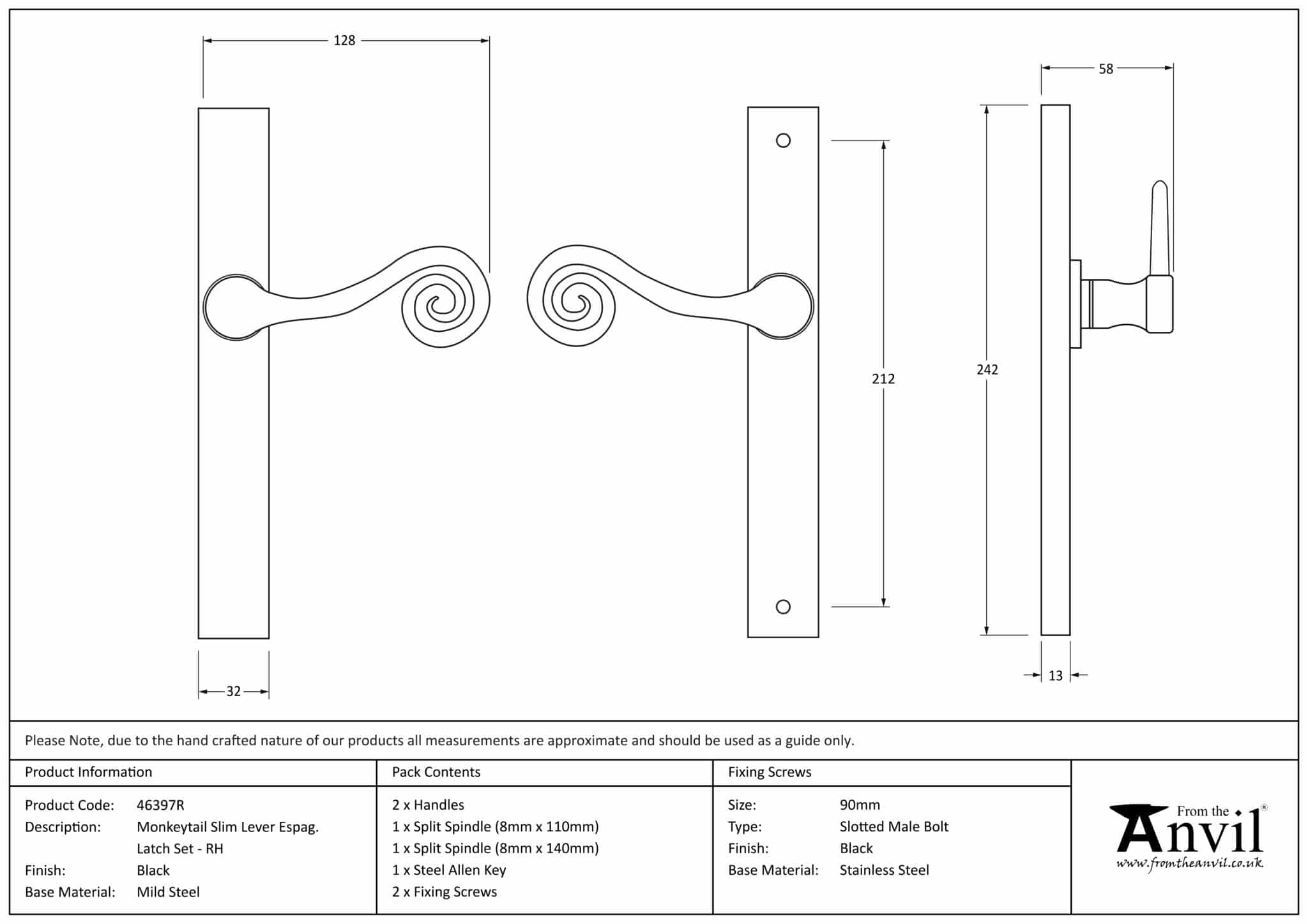 Black Monkeytail Slimline Lever Espag. Latch Set – RH