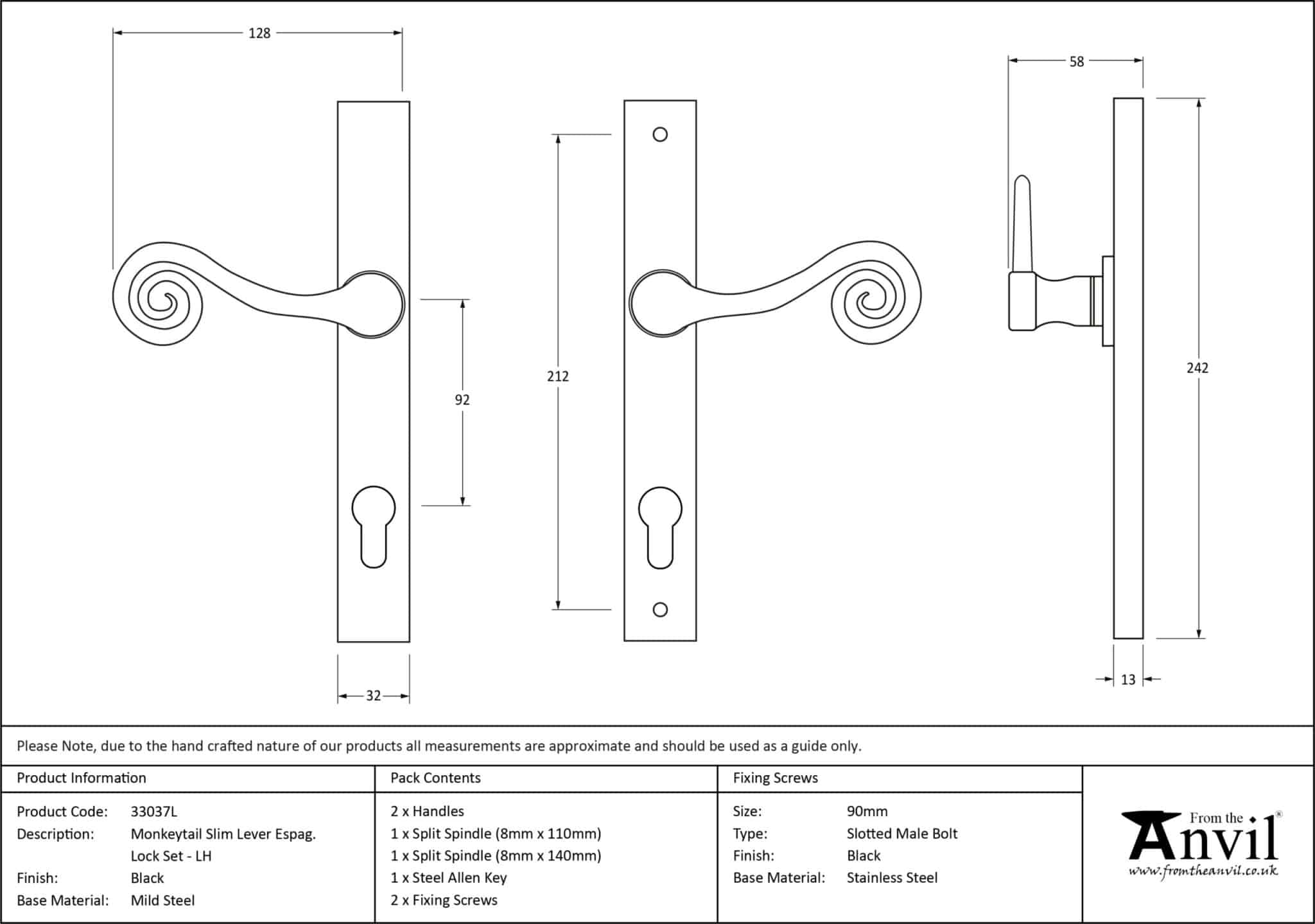 Black Monkeytail Slimline Lever Espag. Lock Set – LH