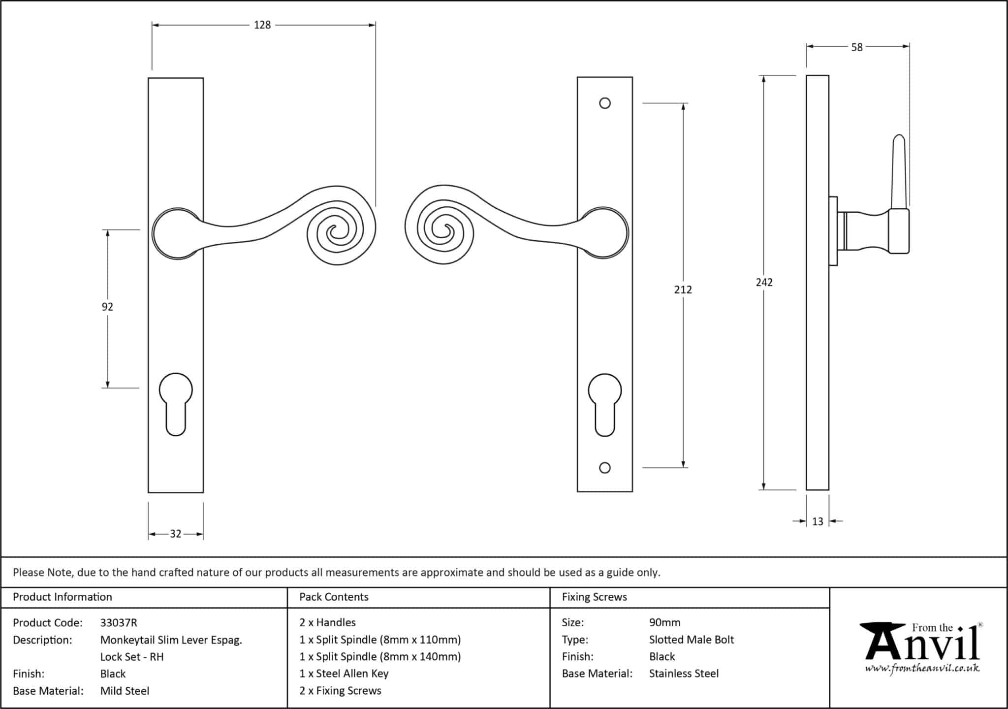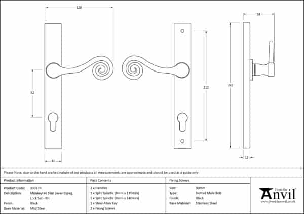 Black Monkeytail Slimline Lever Espag. Lock Set – RH