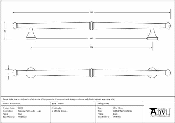 Our black finish is a popular choice in traditional settings, it has a subtle sheen and offers a bold contrast on both stained and painted timber alike. It is baked in a high-temperature oven giving it durable corrosion resistant properties.