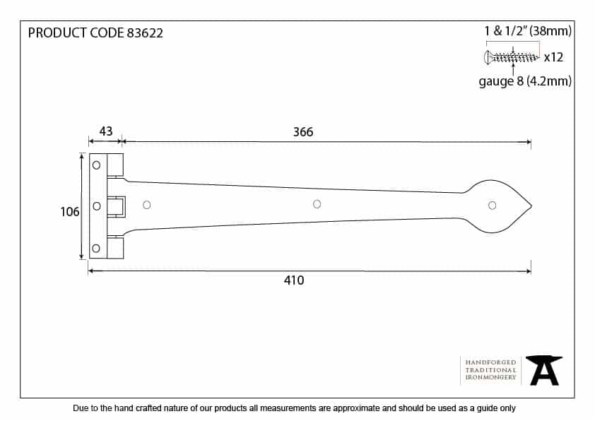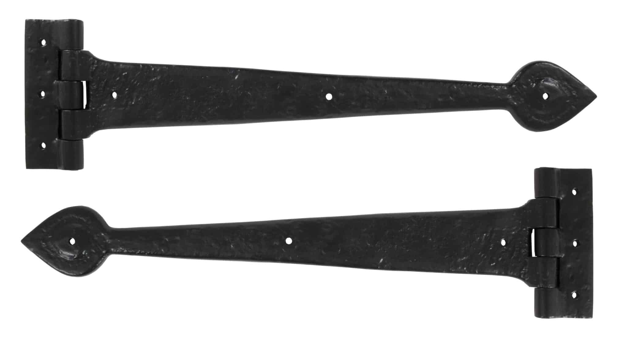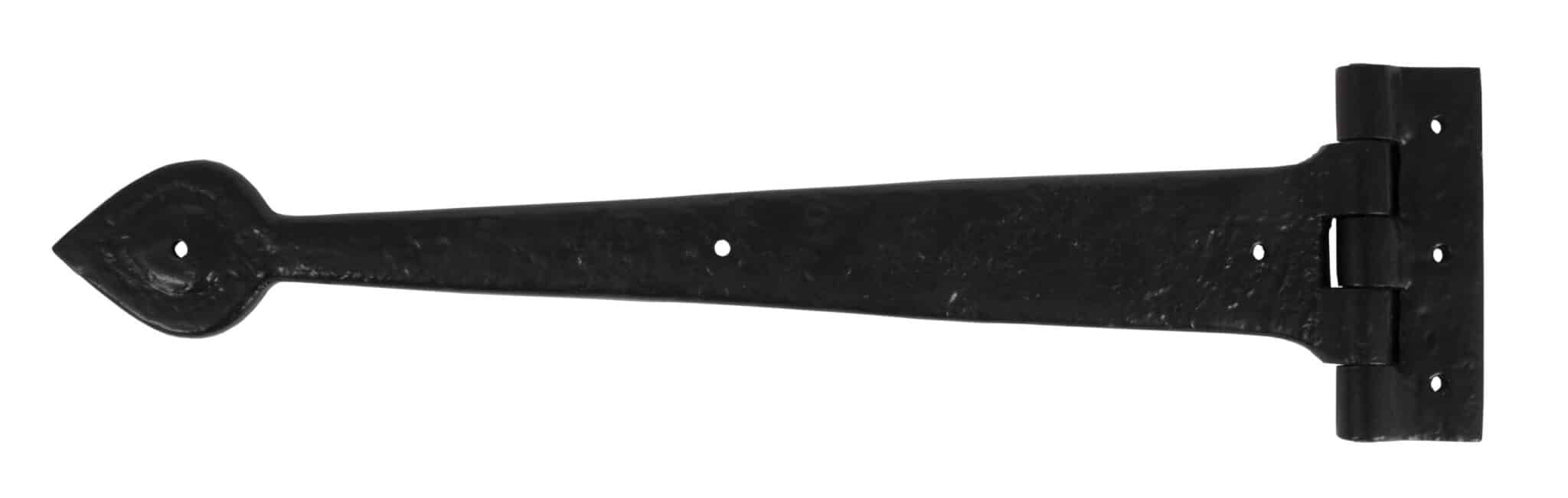 When opened a tee hinge has the appearance of a letter ‘T’. An alternative to butt hinges, tee hinges are usually used in conjunction with a suffolk latch on traditional plank doors.