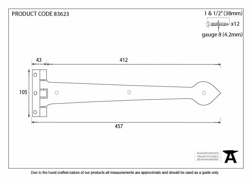 When opened a tee hinge has the appearance of a letter ‘T’. An alternative to butt hinges, tee hinges are usually used in conjunction with a suffolk latch on traditional plank doors.