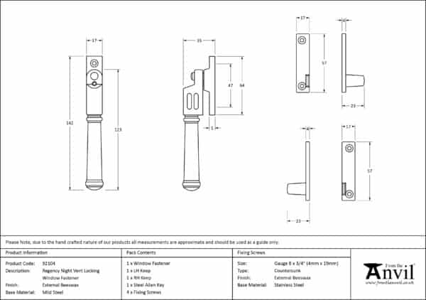 External Beeswax Locking Night-Vent Regency Fastener