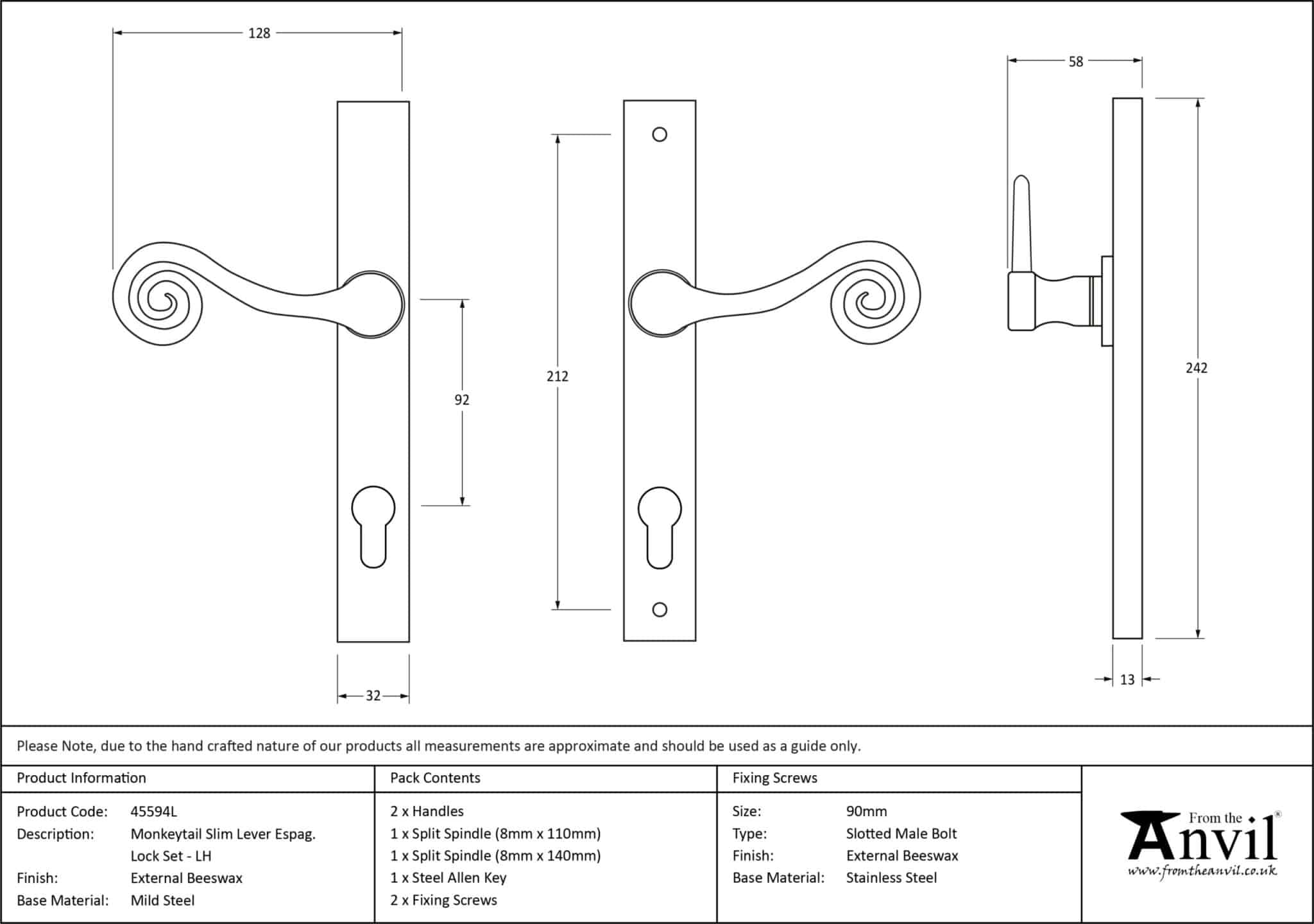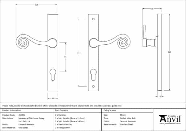 External Doors Beeswax Monkeytail Slim. Lever Espag. Lock Set – LH
