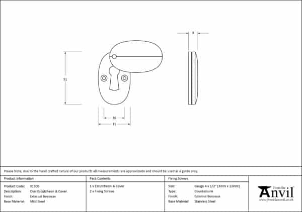 External Beeswax Oval Escutcheon & Cover