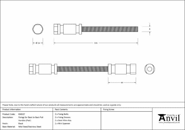 Fixings for back to back pull handles (pair)