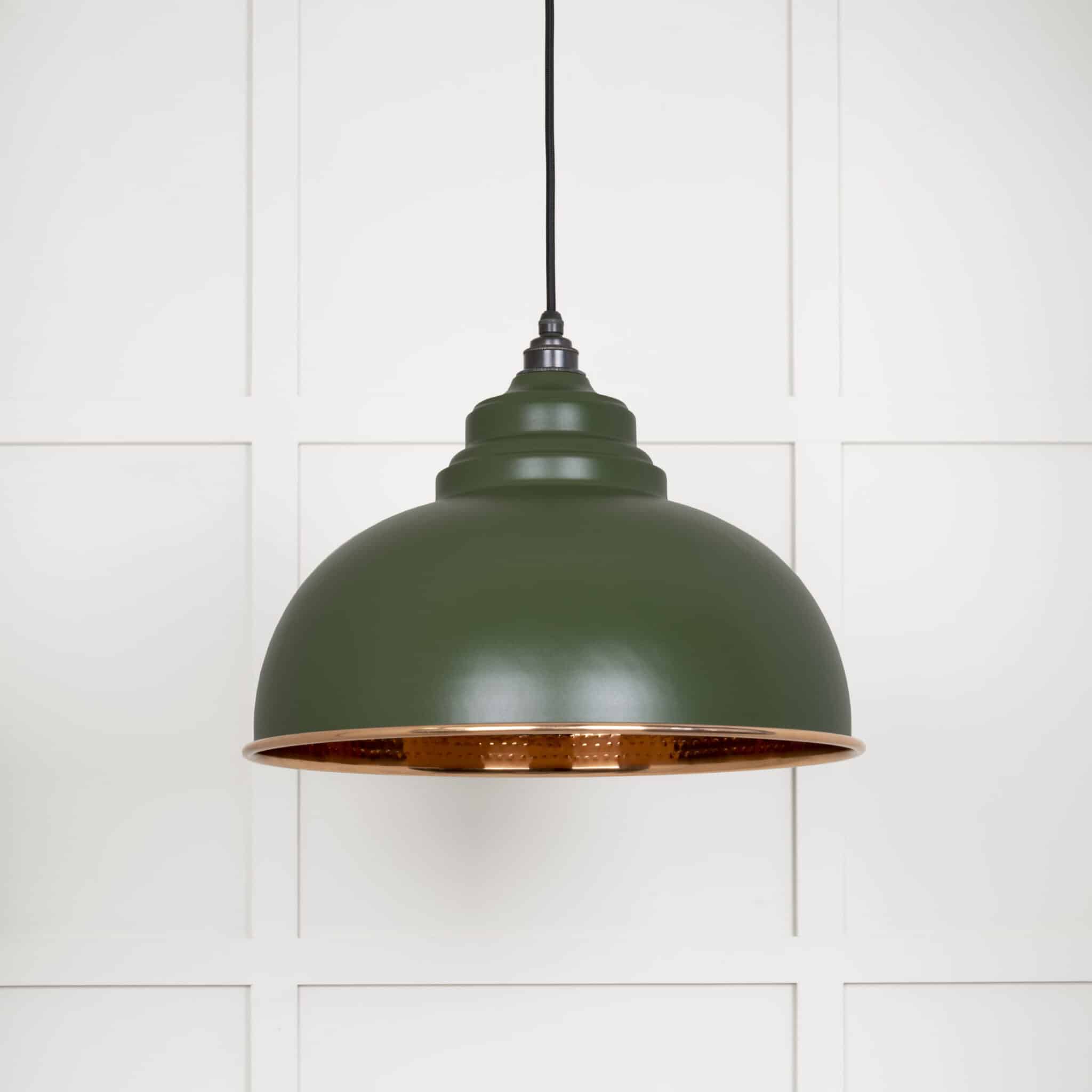 Our Hammered Copper pendants are spun from solid copper. When lit, the hammered finish achieves a soft, dappled light. These pendants work best with a cooler / brighter bulb as it balances the warm glow of the copper.