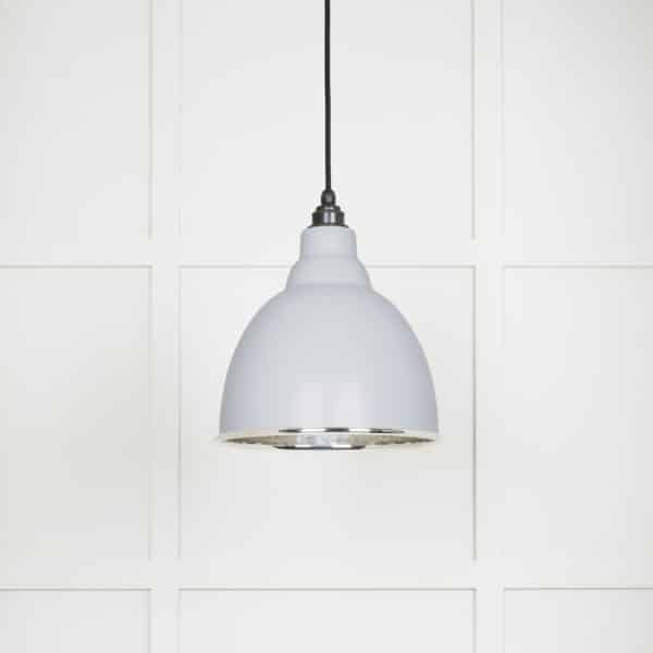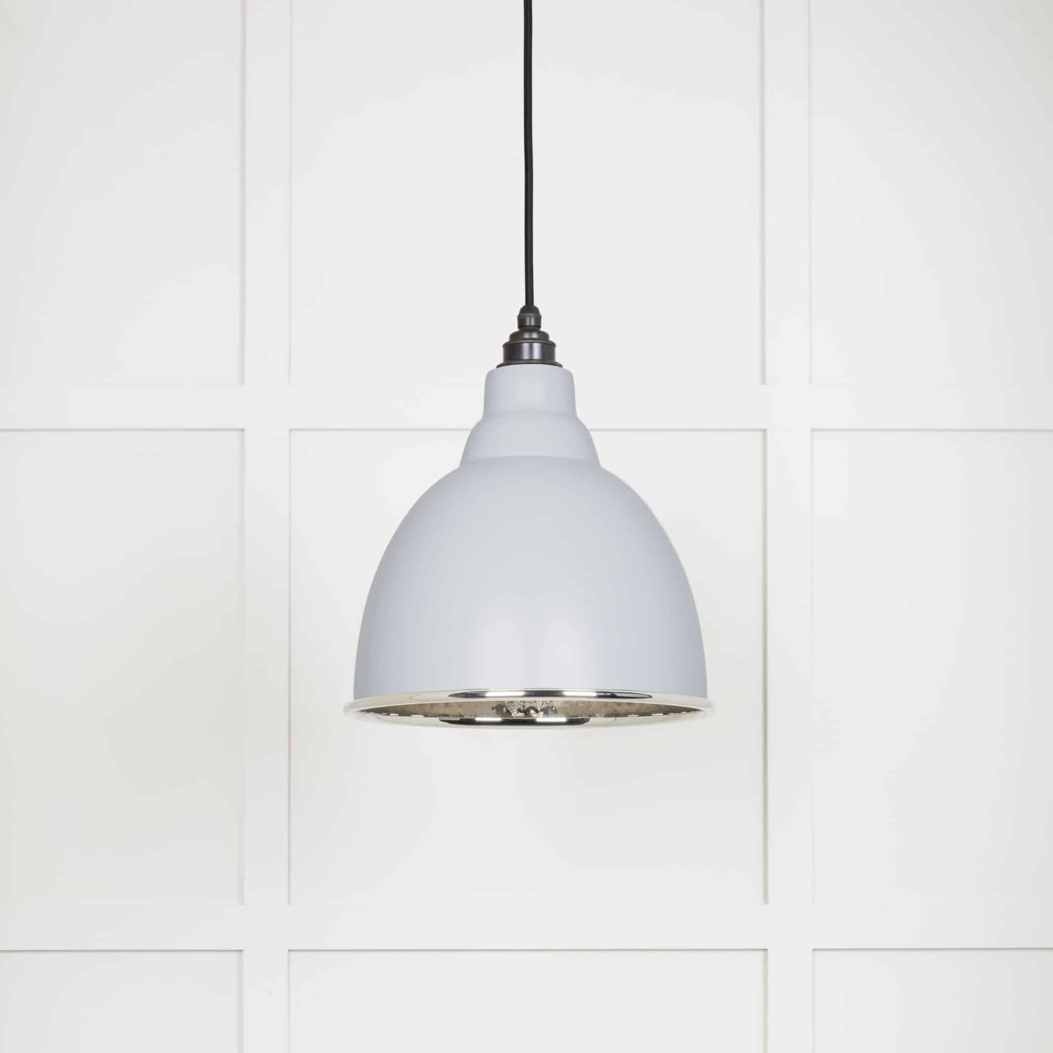 Our Hammered Nickel pendants are spun from solid brass and plated in nickel. When lit, the hammered interior glistens whilst emitting a soft, dappled light.