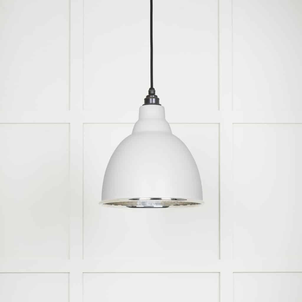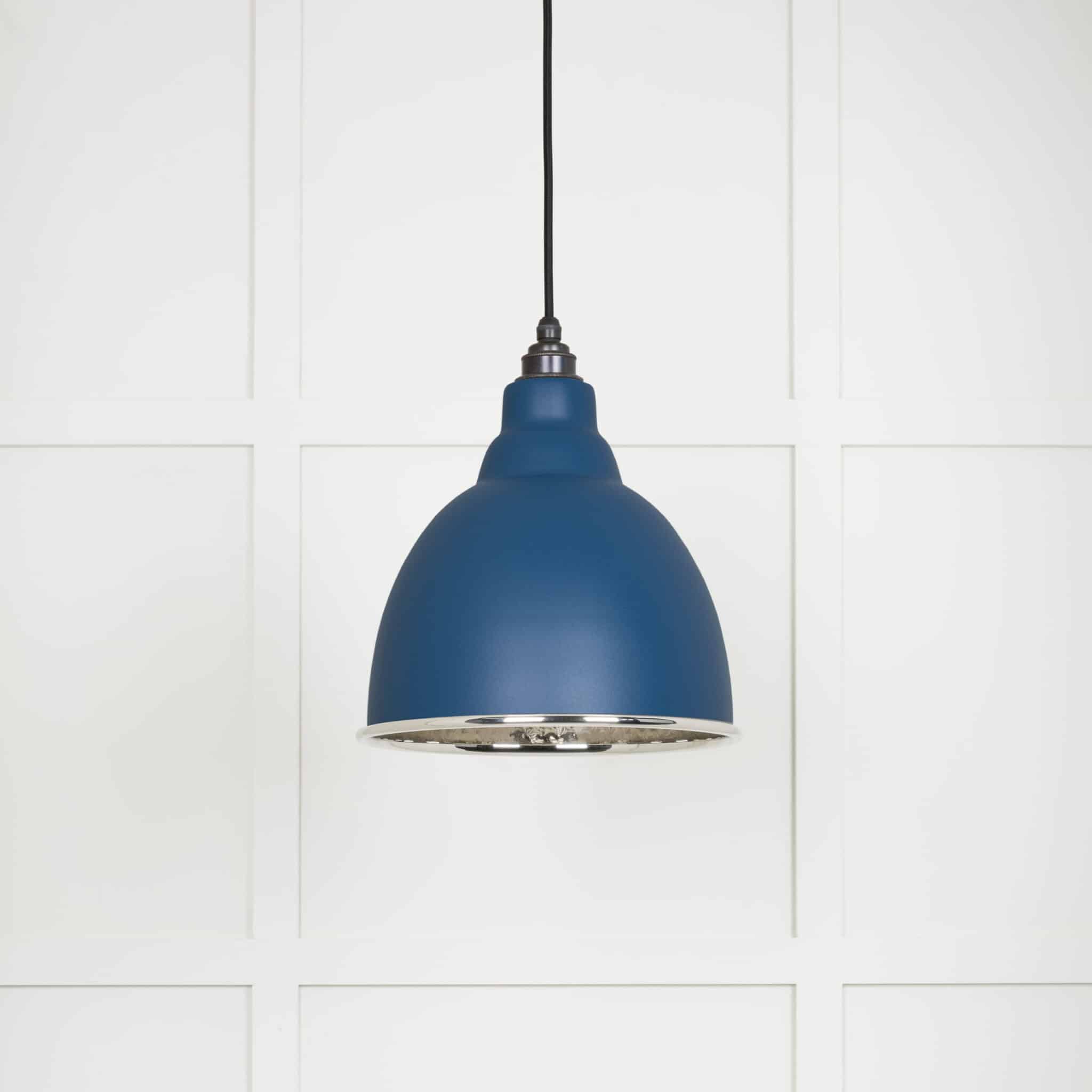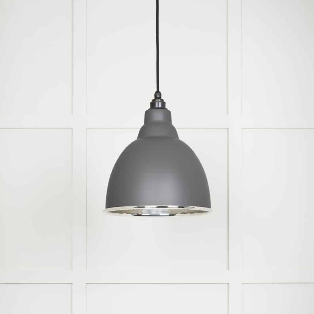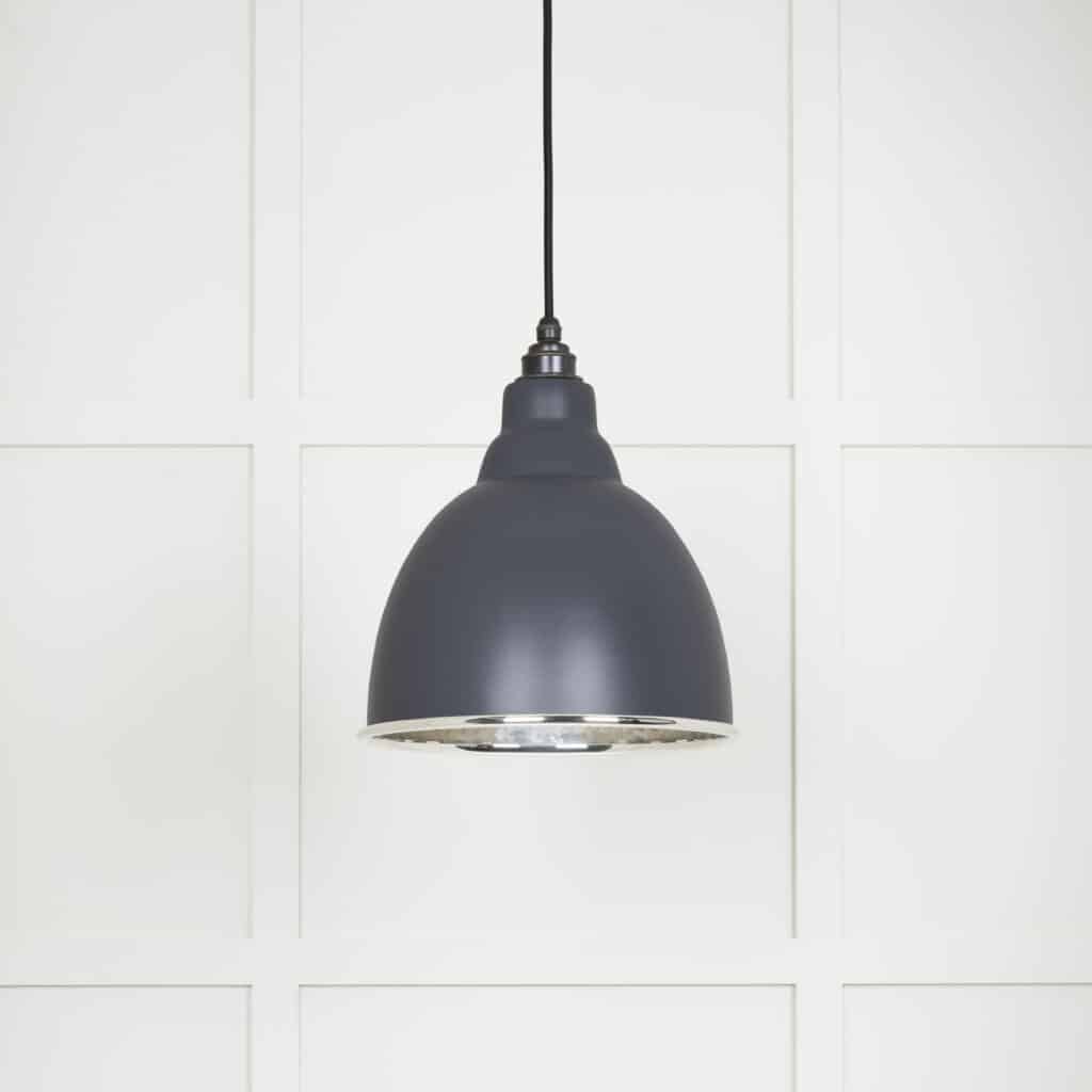 Our Hammered Nickel pendants are spun from solid brass and plated in nickel. When lit, the hammered interior glistens whilst emitting a soft, dappled light.