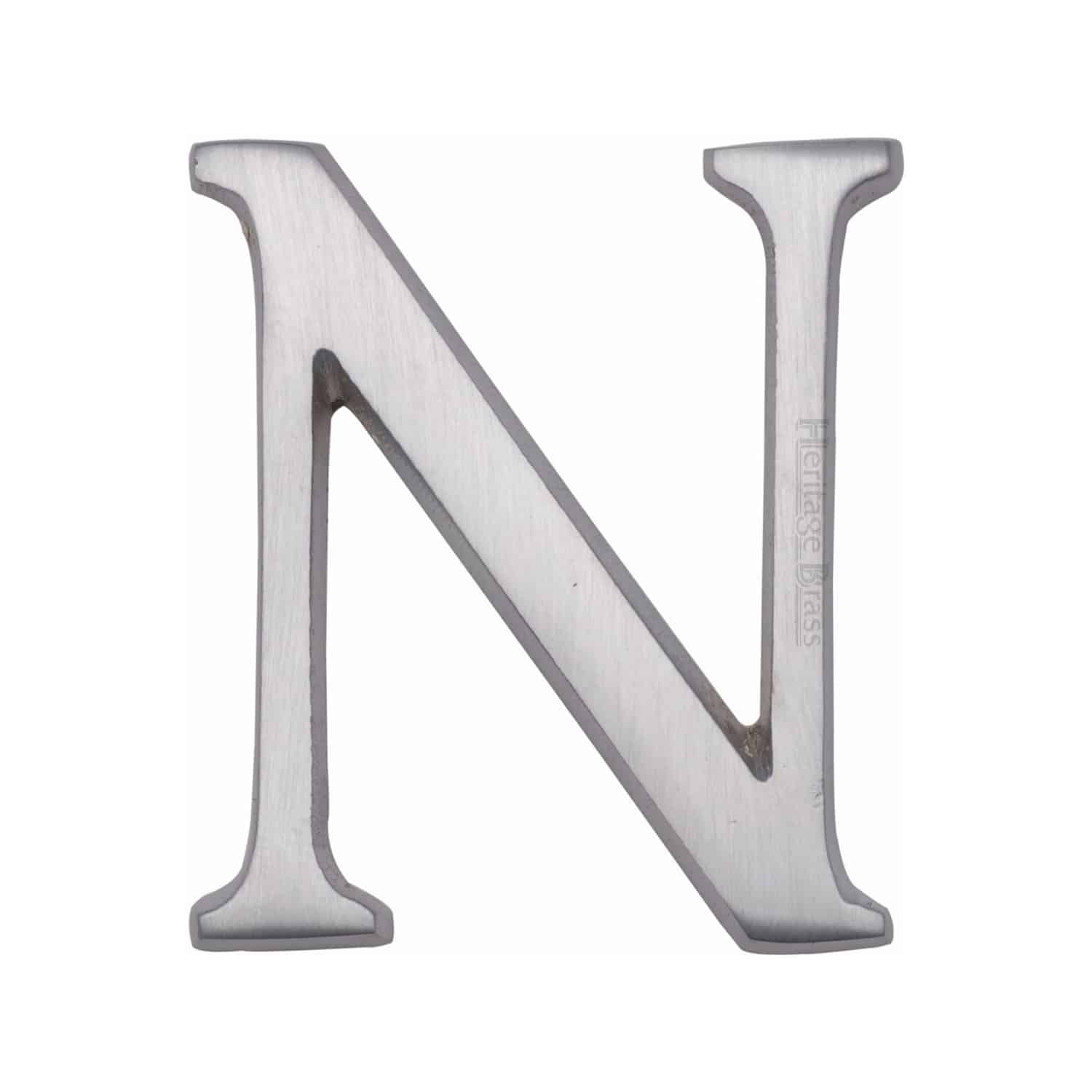 Heritage Brass Alphabet N Pin Fix 51mm (2″) Satin Chrome Finish