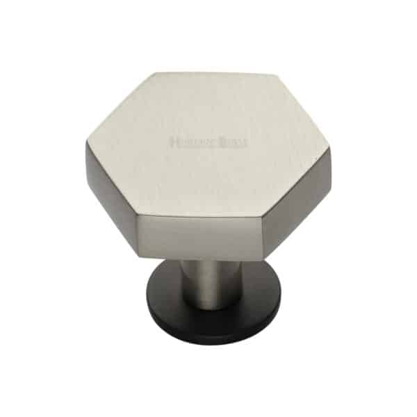 Heritage Brass Cabinet Knob Hexagon Design with Rose 32mm Matt Bronze/Satin Nickel finish
