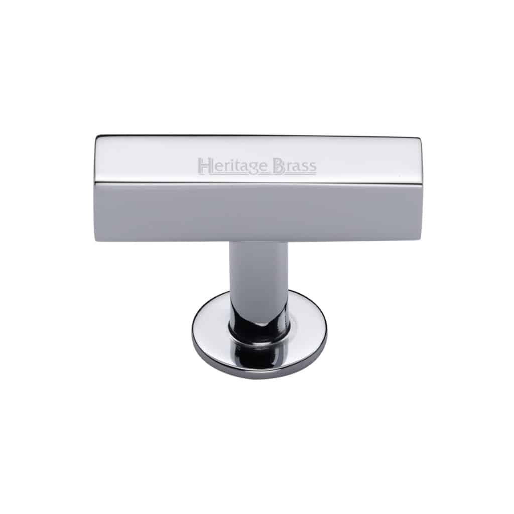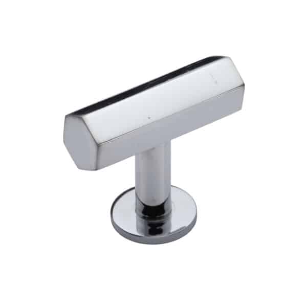 Heritage Brass Cabinet Knob Hexagon T-Bar Design with Rose 41mm Polished Chrome finish