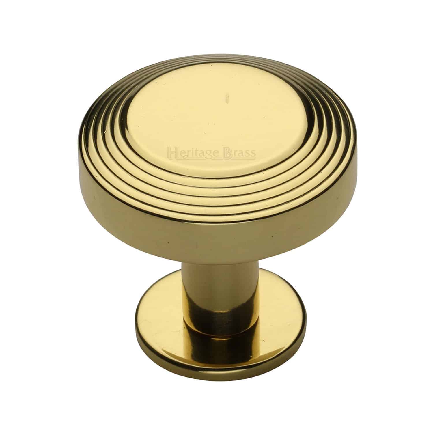 Heritage Brass Cabinet Knob Ridge Design with Rose 38mm Polished Brass finish