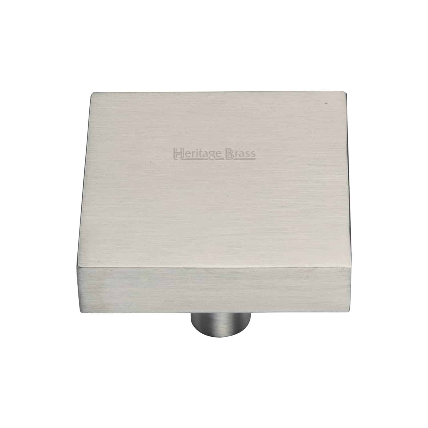 Heritage Brass Cabinet Knob Square Design 38mm Satin Nickel finish
