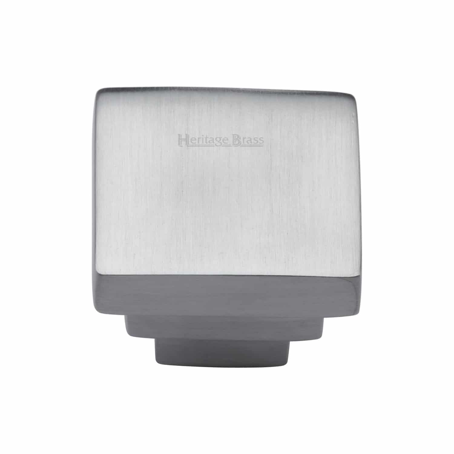 Heritage Brass Cabinet Knob Square Stepped Design 32mm Satin Chrome finish