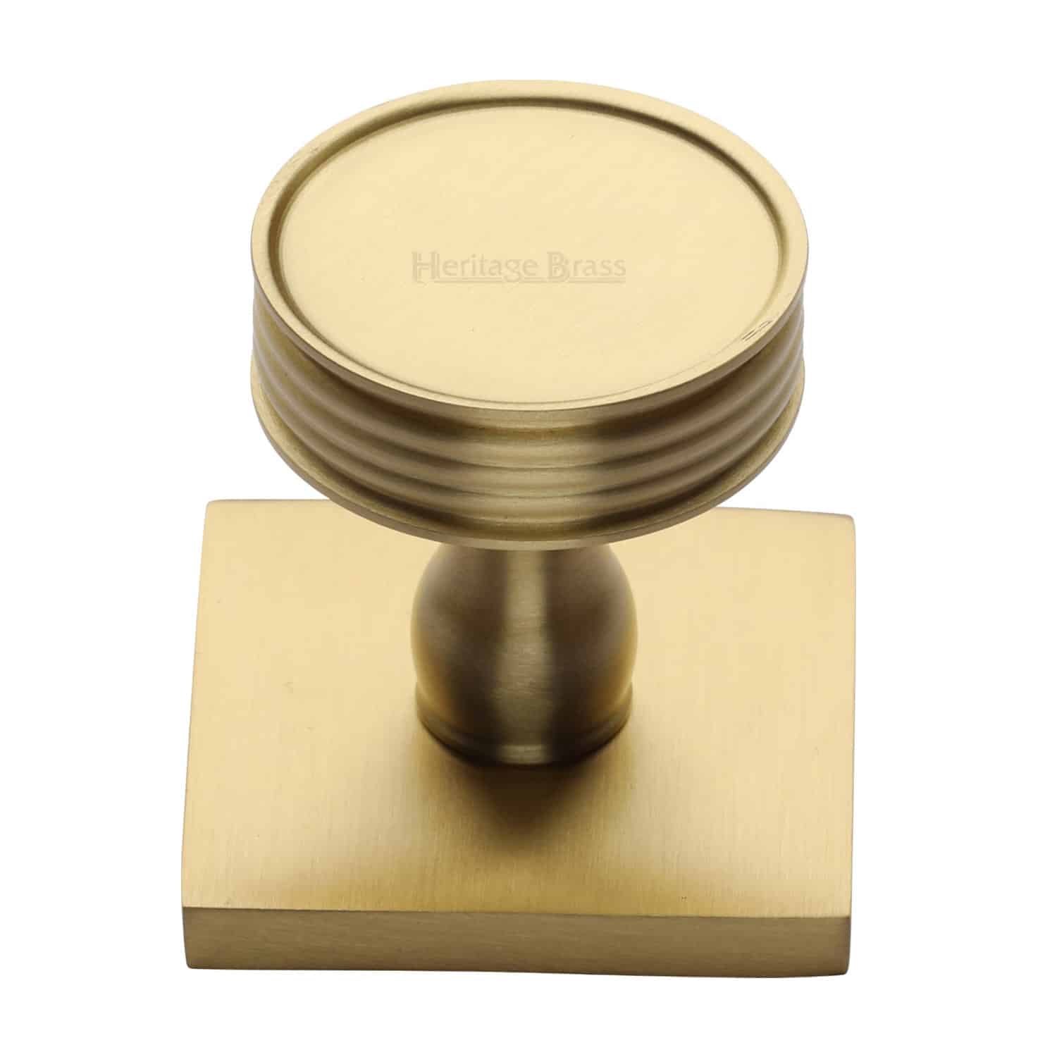 Heritage Brass Cabinet Knob Venetian Design with Square Backplate 32mm Satin Brass finish