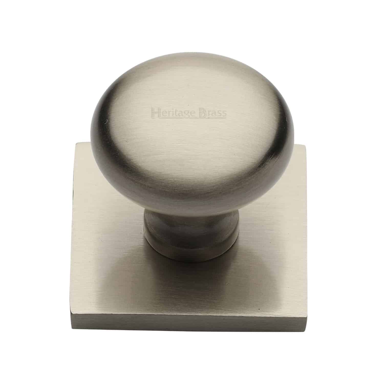 Heritage Brass Cabinet Knob Victorian Round Design with Square Backplate 32mm Satin Nickel finish