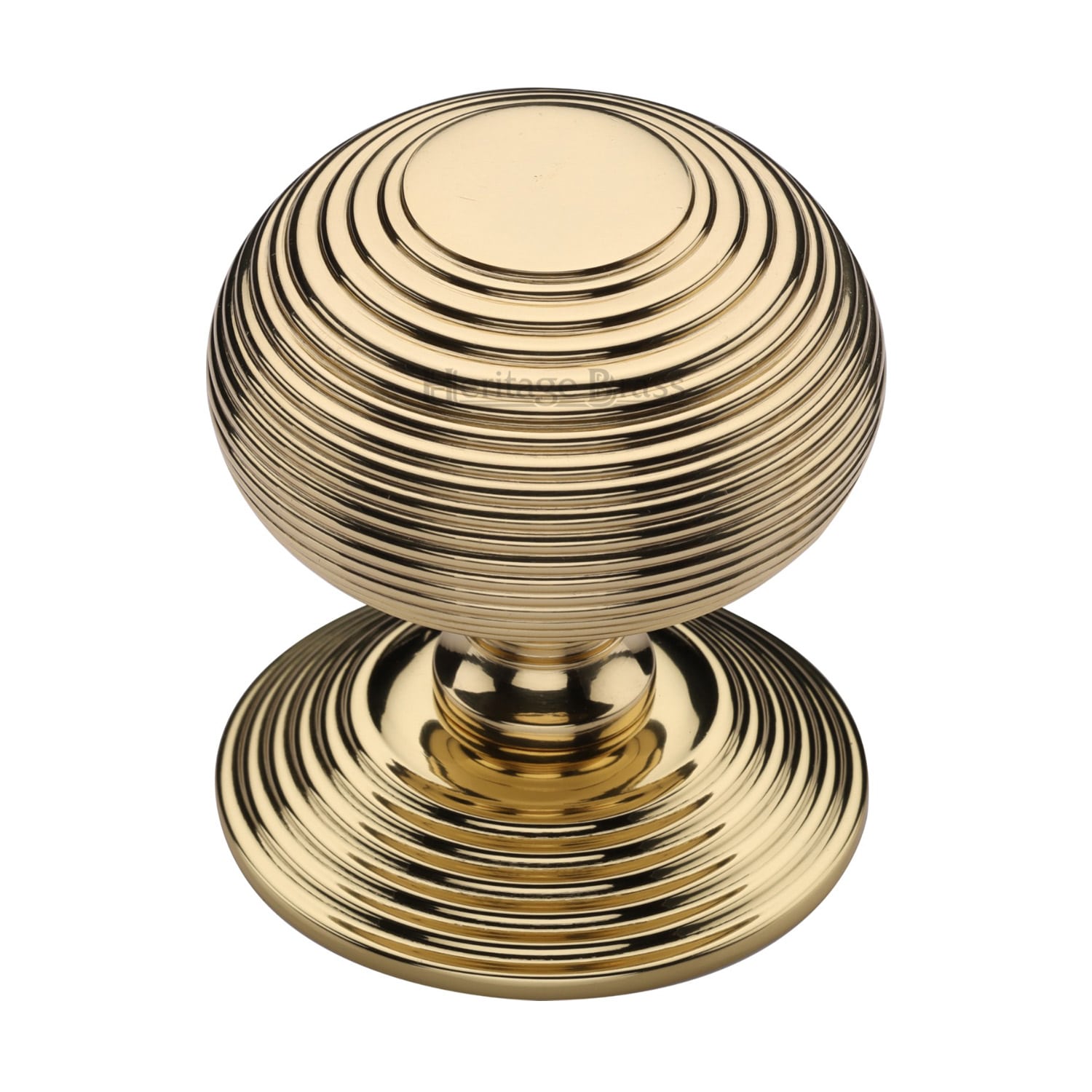 Heritage Brass Centre Door Knob Reeded Design 3 1/2″ Polished Brass Finish