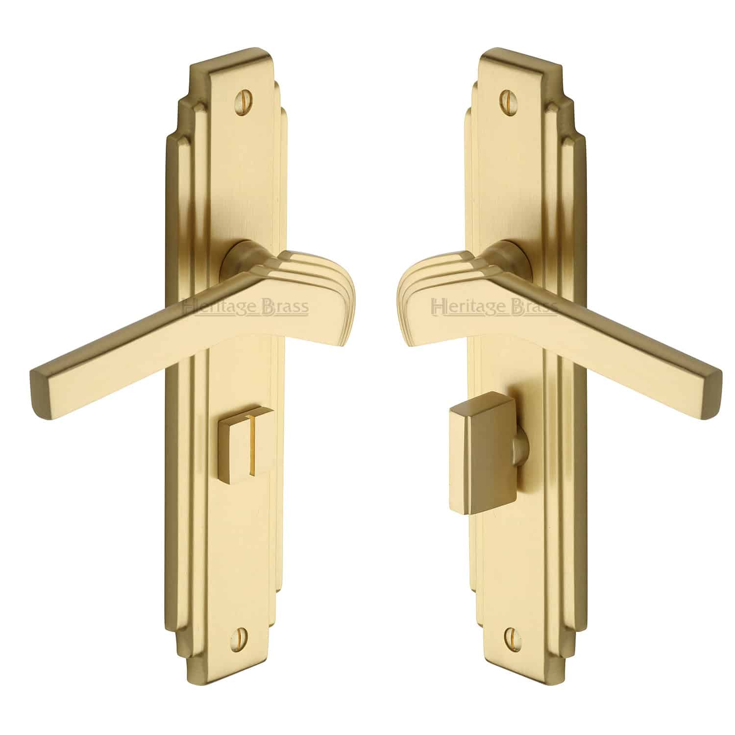 Heritage Brass Door Handle Bathroom Set Tiffany Design Satin Brass Finish