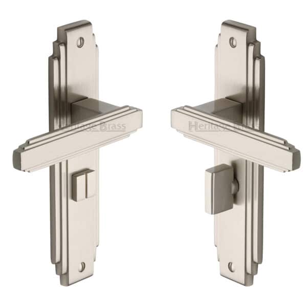 Heritage Brass Door Handle for Bathroom Astoria Design Satin Nickel Finish