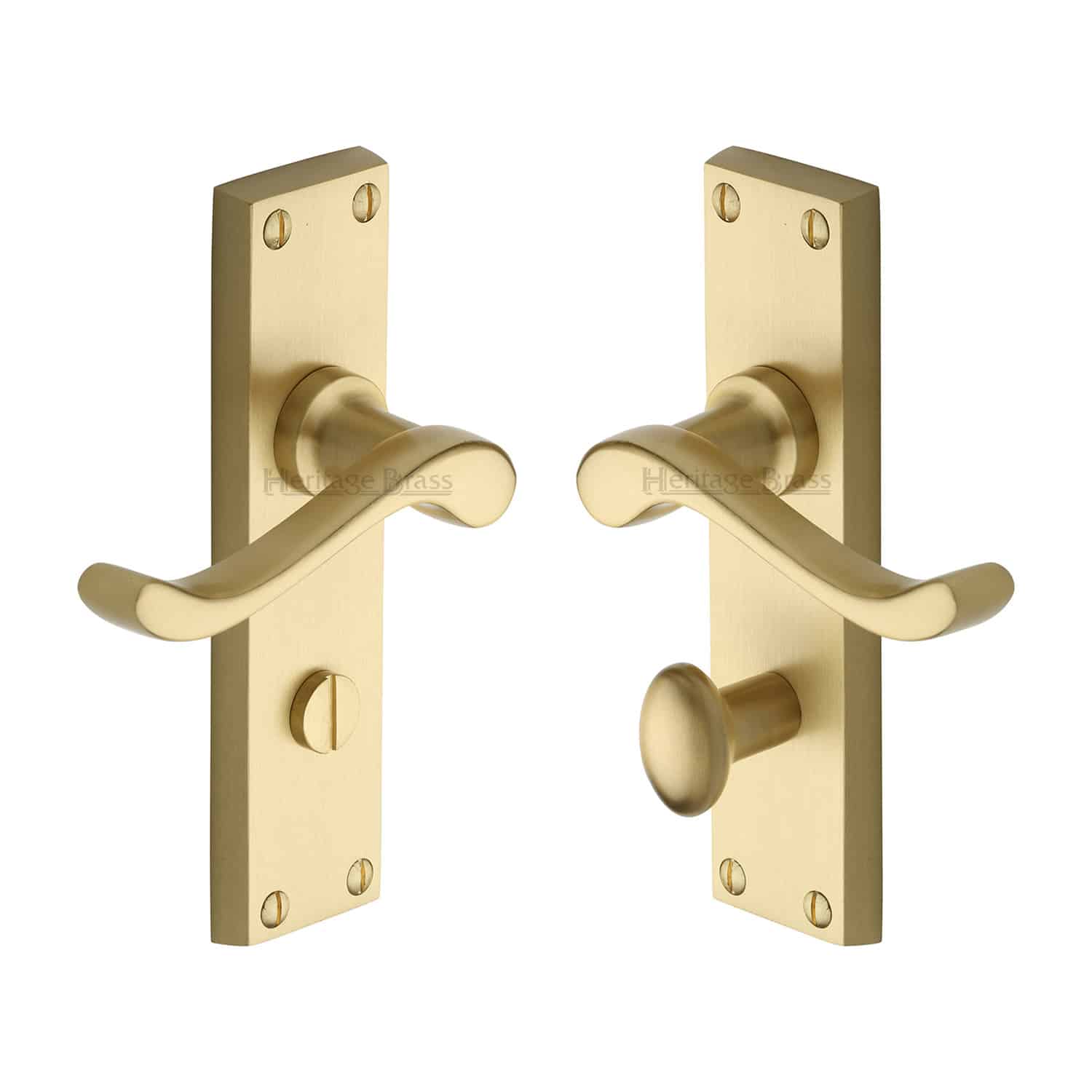 Heritage Brass Door Handle for Bathroom Bedford Design Satin Brass Finish