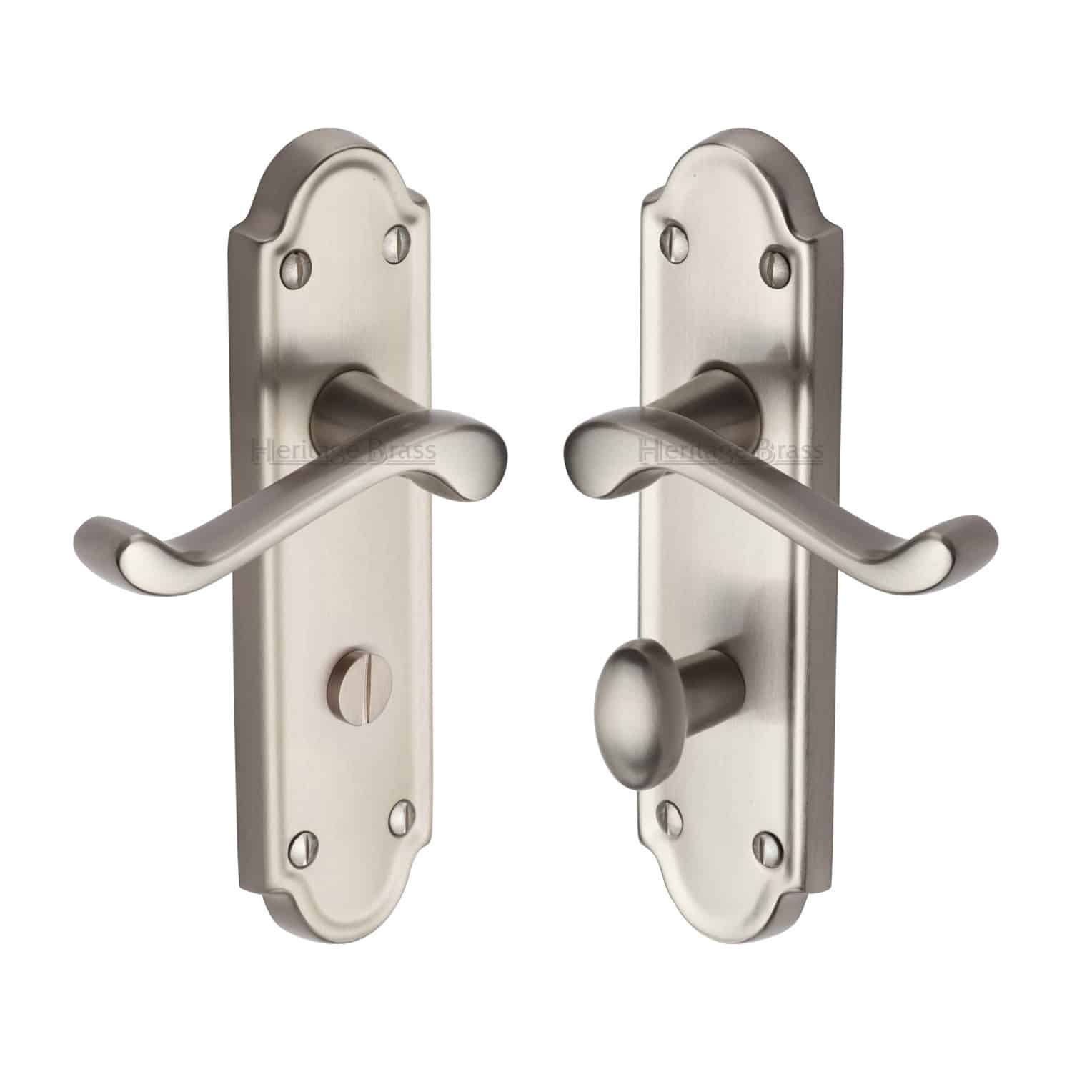 Heritage Brass Door Handle for Bathroom Meridian Design Satin Nickel Finish