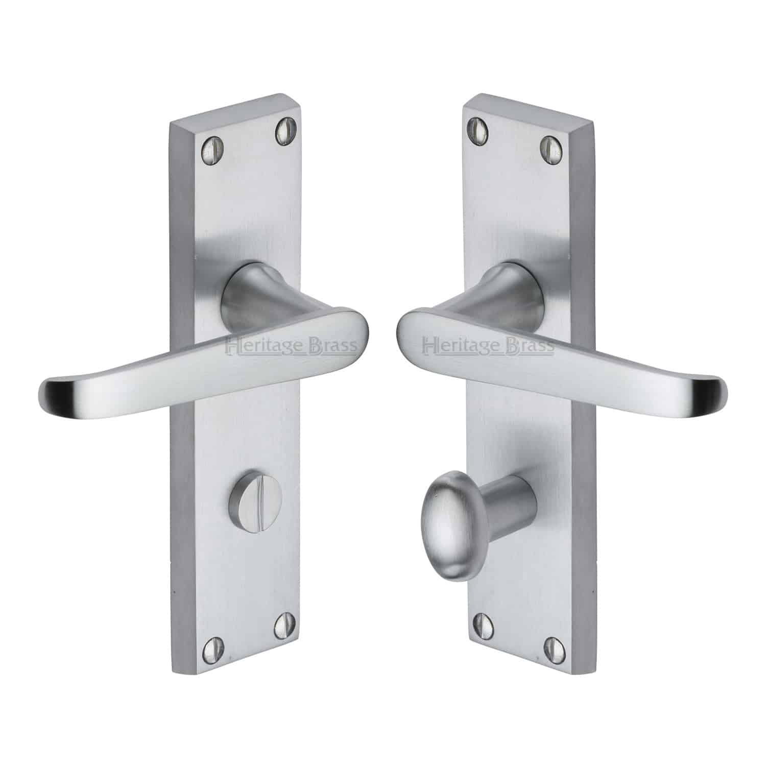 Heritage Brass Door Handle for Bathroom Victoria Design Satin Chrome Finish