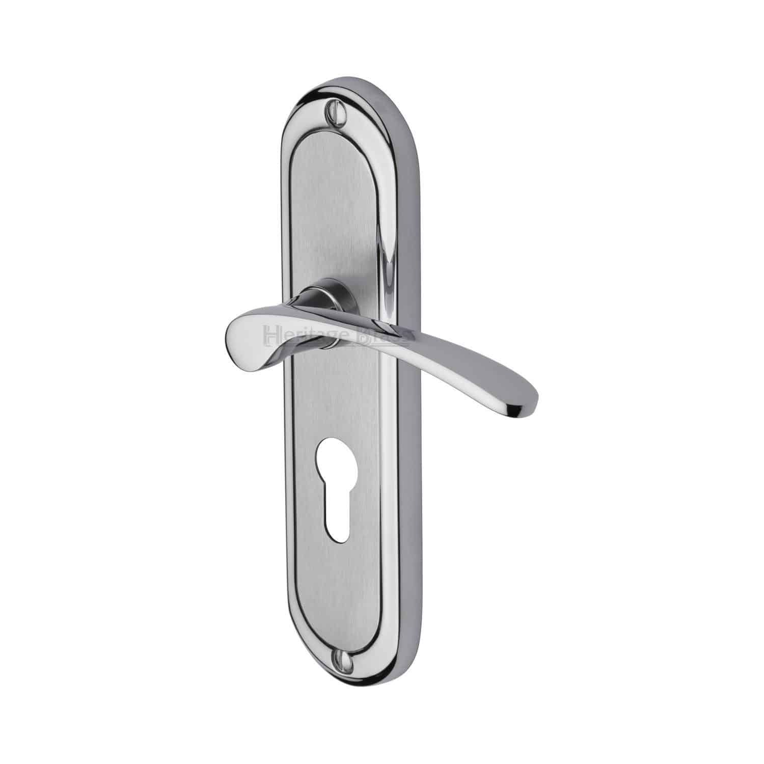 Heritage Brass Door Handle for Euro Profile Plate Ambassador Design Apollo Finish