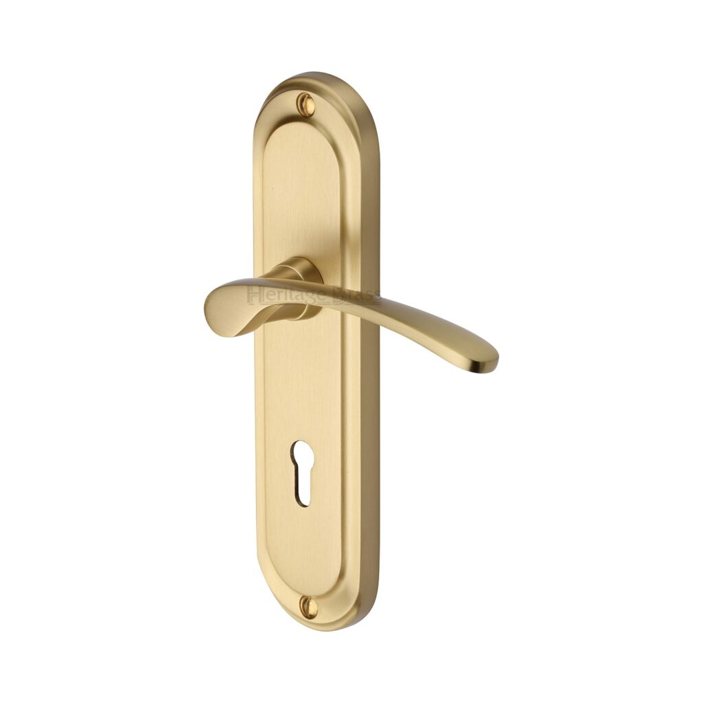 Heritage Brass Door Handle for Euro Profile Plate Ambassador Design Satin Brass Finish