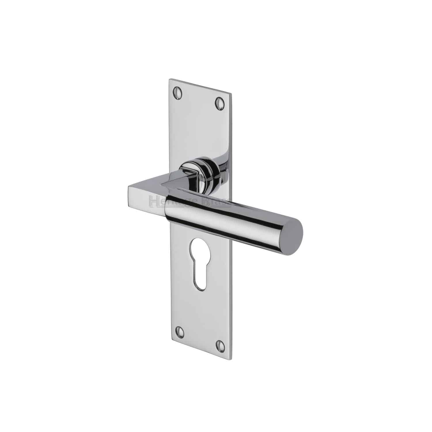 Heritage Brass Door Handle for Euro Profile Plate Bauhaus Design Polished Chrome Finish
