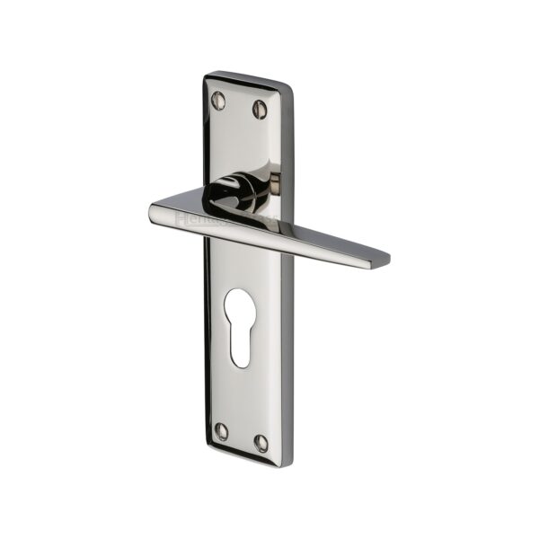 Heritage Brass Door Handle for Euro Profile Plate Kendal Design Polished Nickel Finish