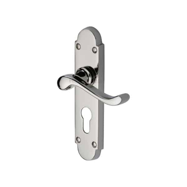Heritage Brass Door Handle for Euro Profile Plate Savoy Design Polished Nickel Finish