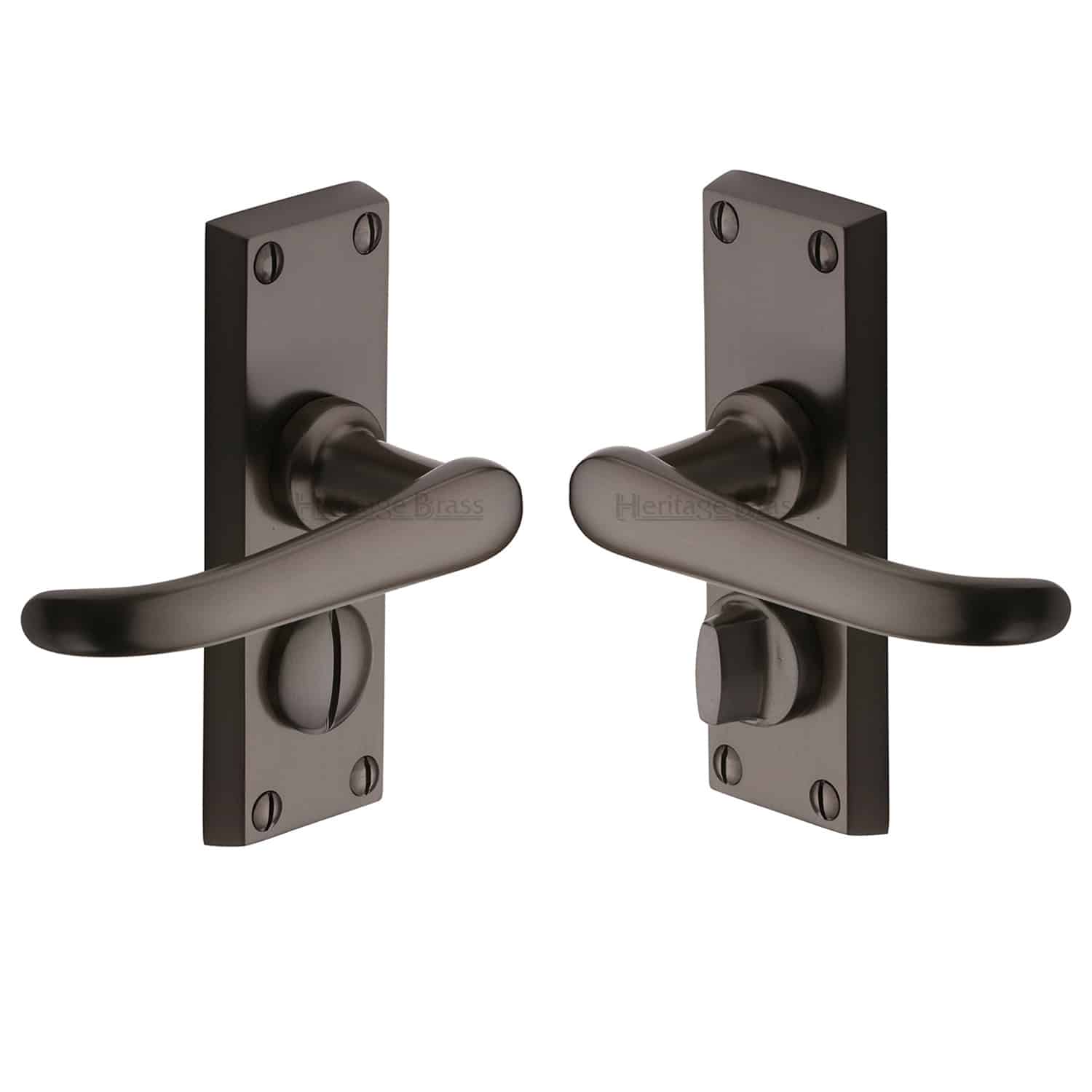 Heritage Brass Door Handle for Privacy Set Windsor Short Design Matt Bronze Finish
