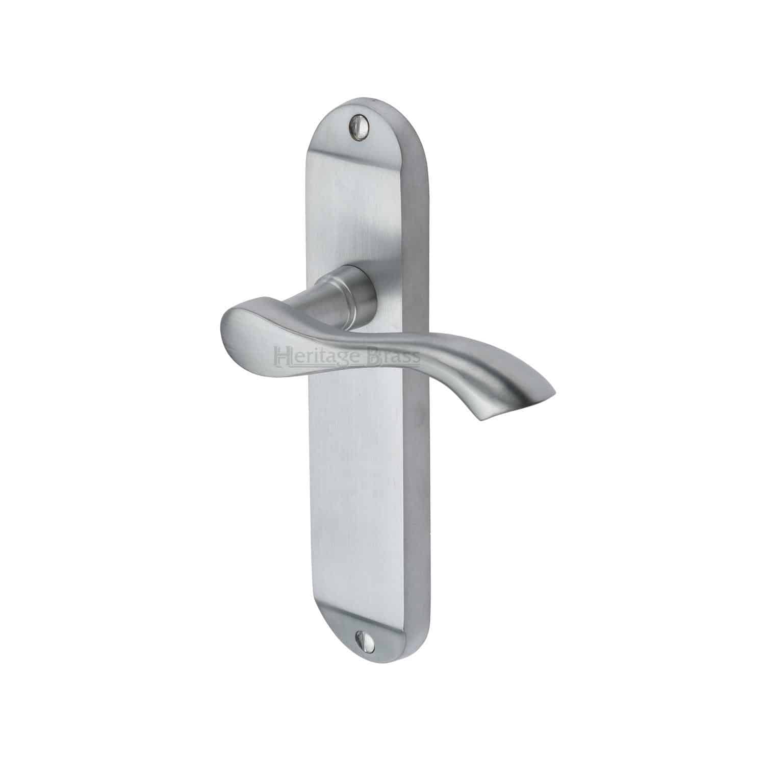 Heritage Brass Door Handle Lever Latch Algarve Design Satin Chrome Finish