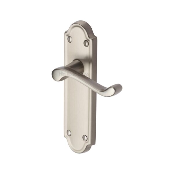 Heritage Brass Door Handle Lever Latch Meridian Design Satin Nickel Finish