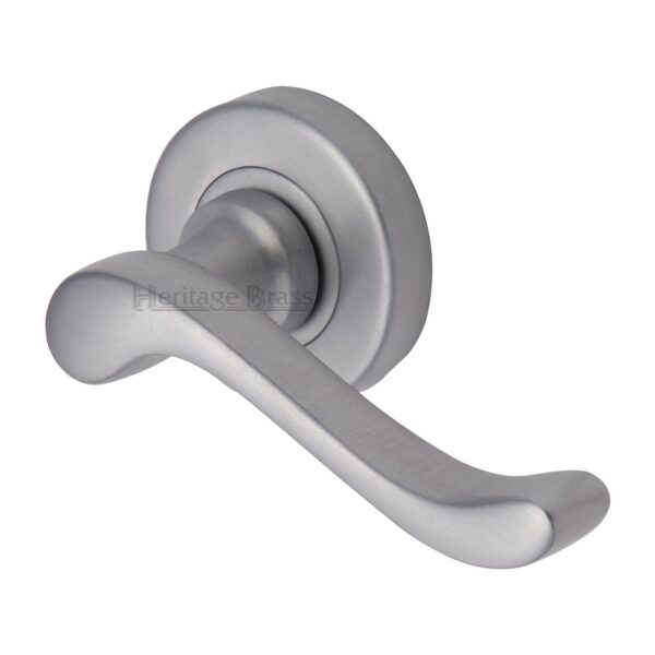 Heritage Brass Door Handle Lever Latch on 53mm Round Rose Bedford Design Satin Chrome Finish